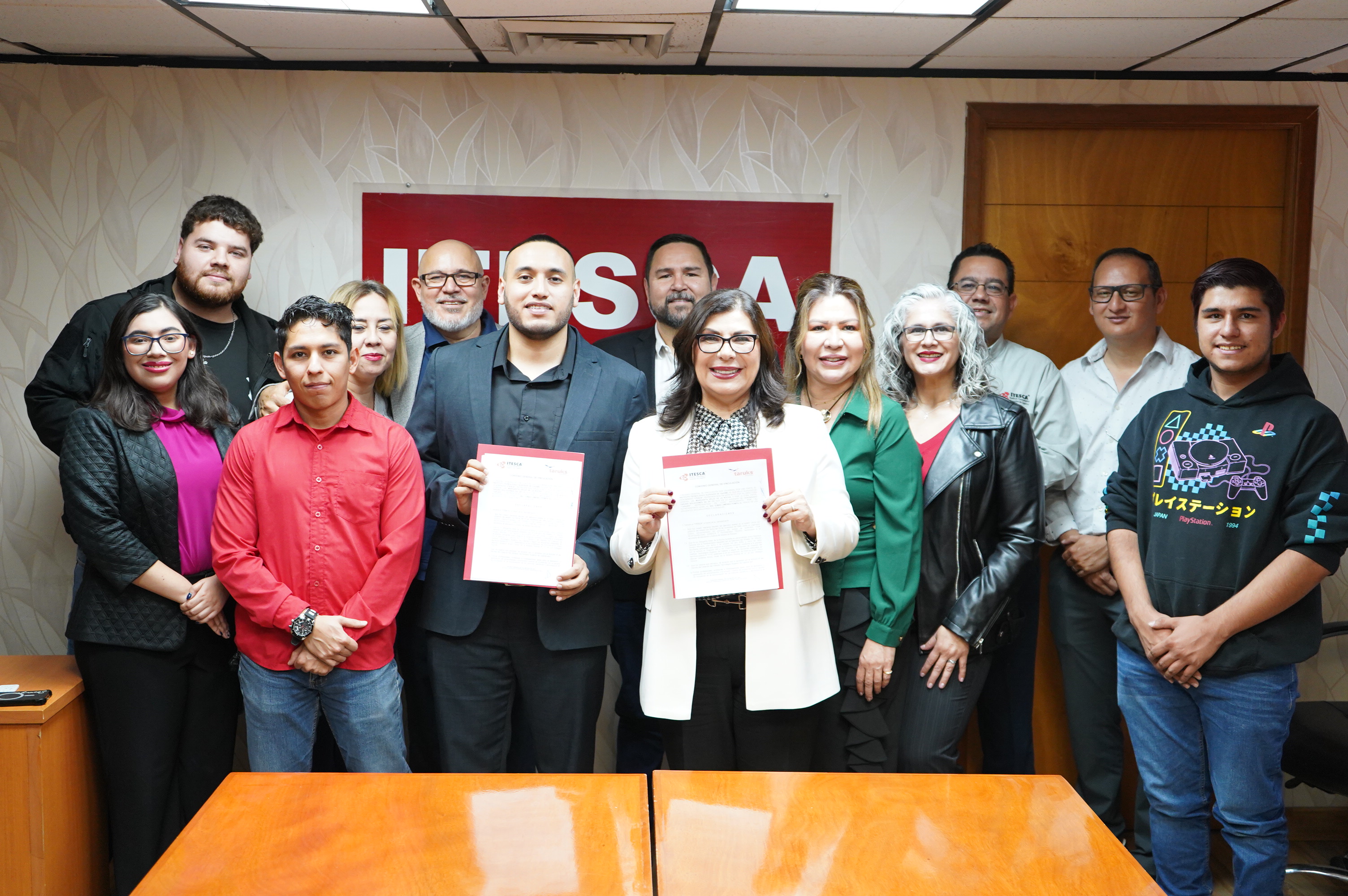 La firma estuvo a cargo de la Lic. Margarita Vélez de la Rocha y la Mtra. Dora Luz López, Directora General y Directora de Vinculación y Planeación, respectivamente, de esta casa de estudios, el Mtro. Tomás Jiménez y el Ing. José Raúl Corona Casarrubias, Director General y Gerente de Proyectos de Taruks, respectivamente.