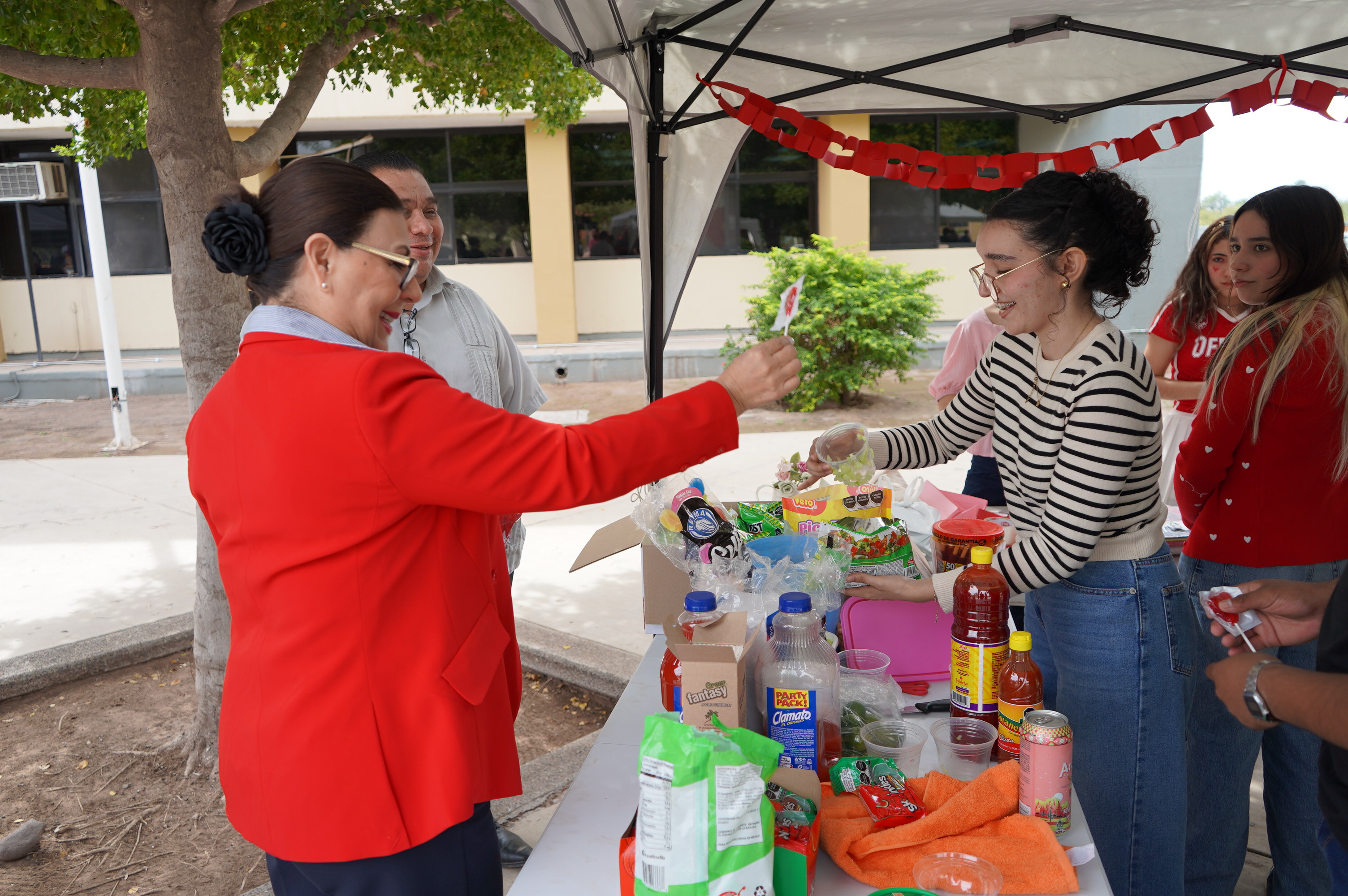 Asimismo, la Lic. Margarita Vélez de la Rocha, entregó golosinas en forma de corazón y realizó un recorrido por los diferentes stands que montaron las Sociedades Estudiantiles, mismas que ofrecieron en venta una basta variedad de productos alimenticios y bebidas.