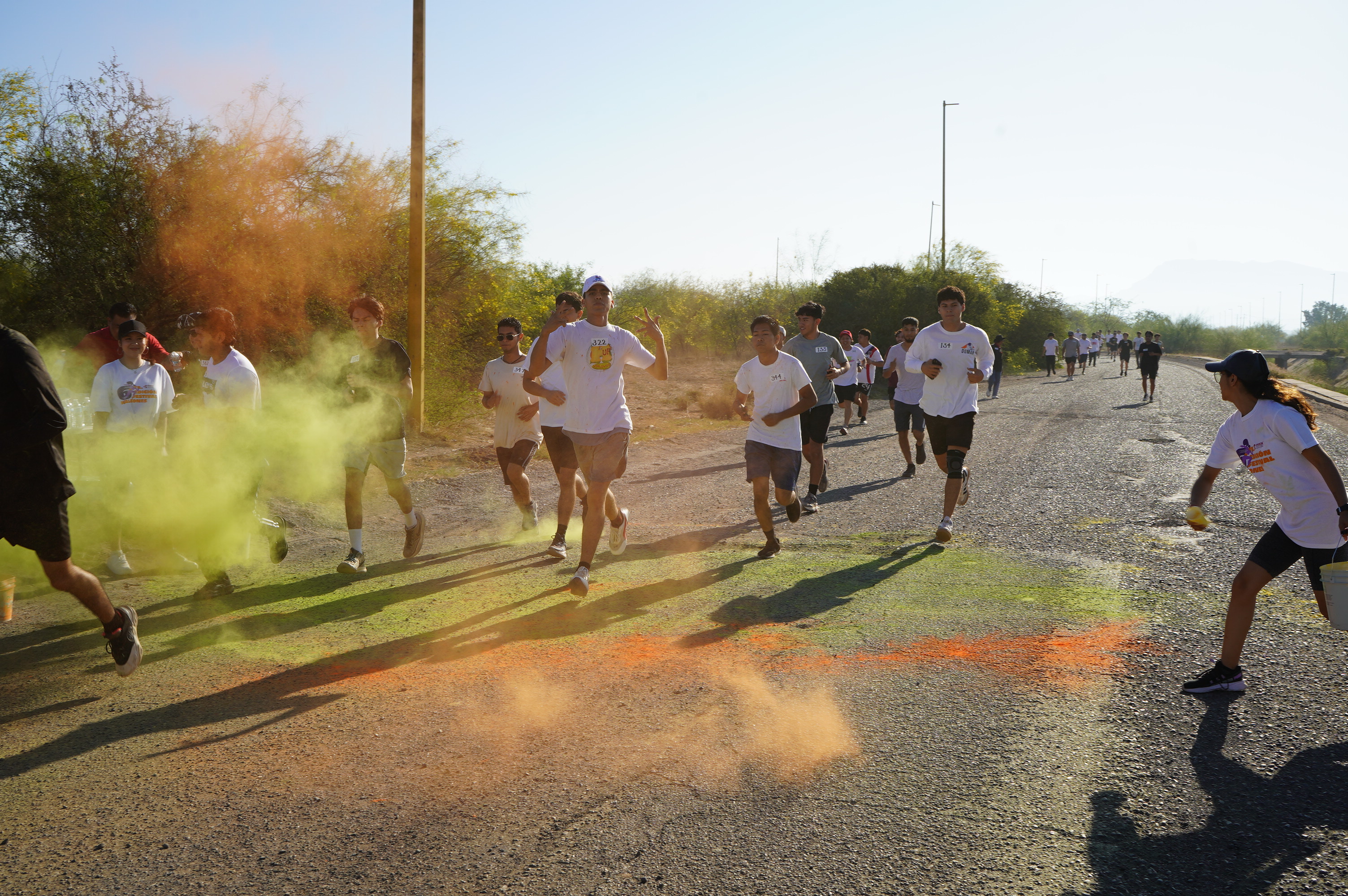 Con una verdadera muestra de vigor, fortaleza, tenacidad y entusiasmo, decenas de estudiantes del Instituto Tecnológico Superior de Cajeme, así como personal docente, directivo y administrativo, participaron en la carrera de colores Holi Run “Orgullo ITESCA” VIII Edición de cinco kilómetros, como parte del Festival Halcones en el marco de las Jornadas por la Paz y festejos con motivo del 30 aniversario de este centro universitario.